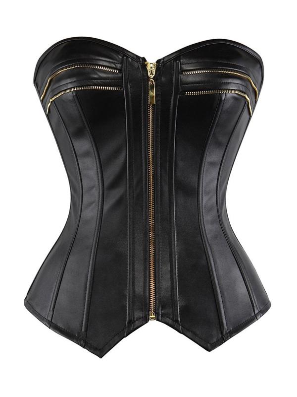 Fashion Outwear Front Golden Zipper Overbust Artificial Leather Corset