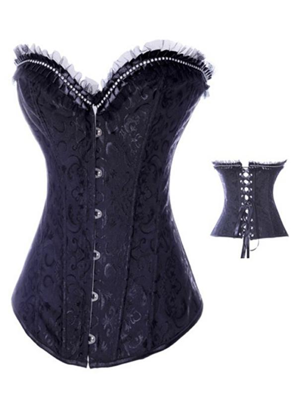 Good Qulity Jacquard Rhinestone Lace Top Overbust Corset