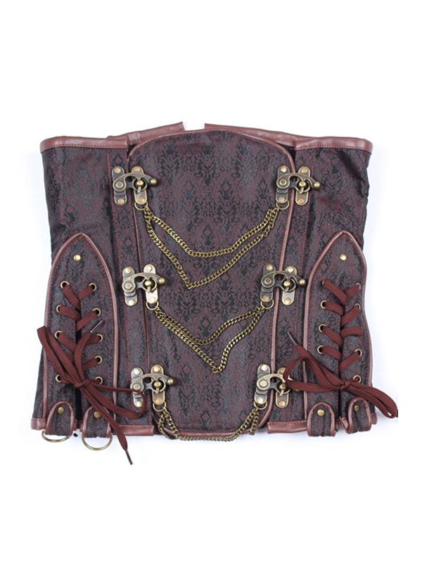 Gothique Steel Boned Brocade Corset Underbust Steampunk Brown Bustier #3614
