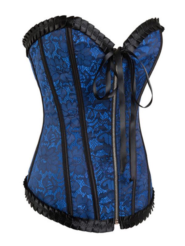 Fashion Front Zipper Leopard Overbust Women Satin Corset #1626