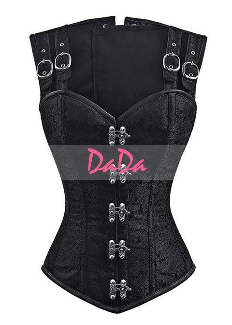Black Percale Jacquard Steel Boned Overbust Corset Steampunk Corset Wholesale