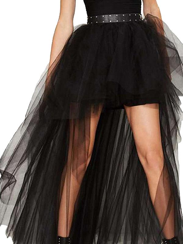 Fashion front short and back long mesh skirt with large tail, large size woemn irregular skirt #7268