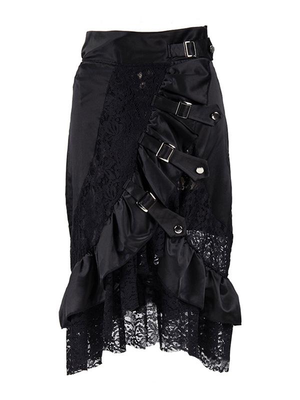 Black Lace Fringe Punk Rock Goth skirt High Waist Women Irregular Skirt #7270