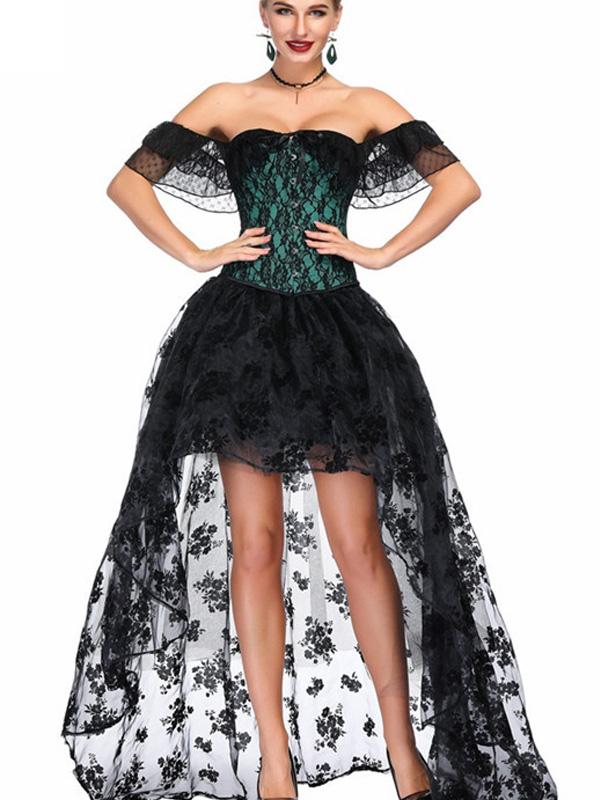 Green Corset Tops PJ060 + Lace Dress With Floor Sweep #7264 Party Corset Set