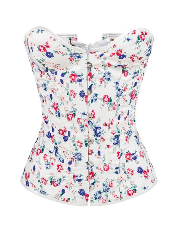Good Quality Denim White Floral Printing Overbust Corset Tops #1663