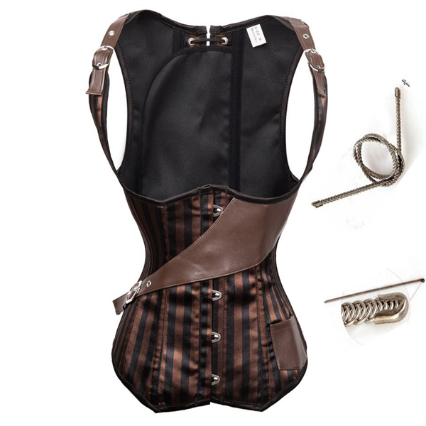 Steampunk Underbust Plus Size Tight Shaper Lace Vest Bustier Top Straps Striped Corselete #3547